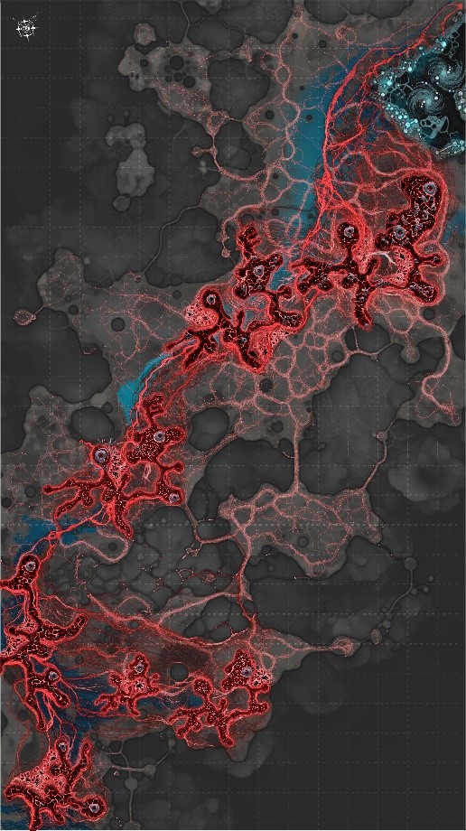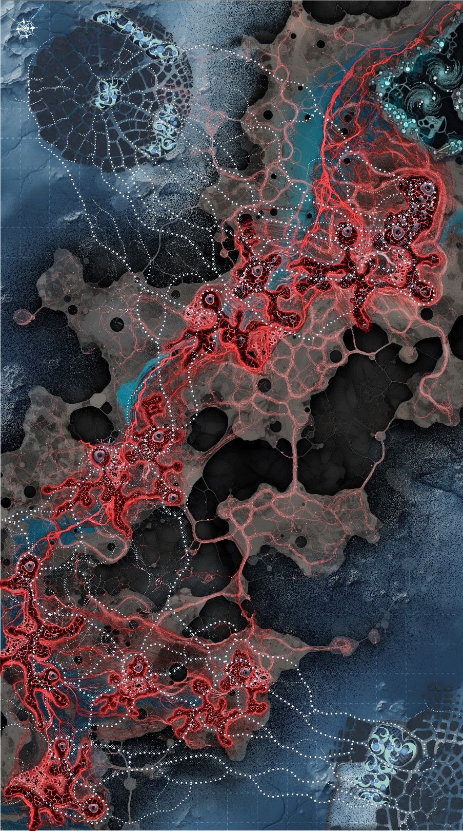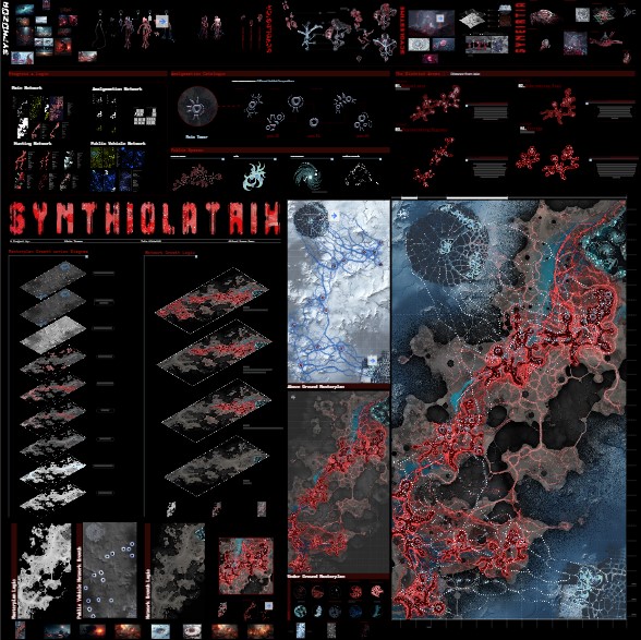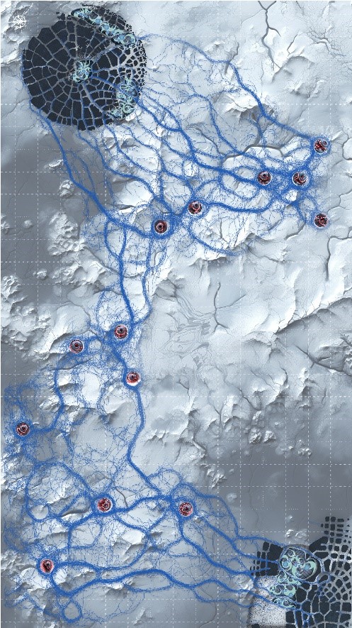 The Final network map showing the different networks the Syphozoan civilization can traverse in. I used Grasshopper Nuclei plugin to generate the maps.