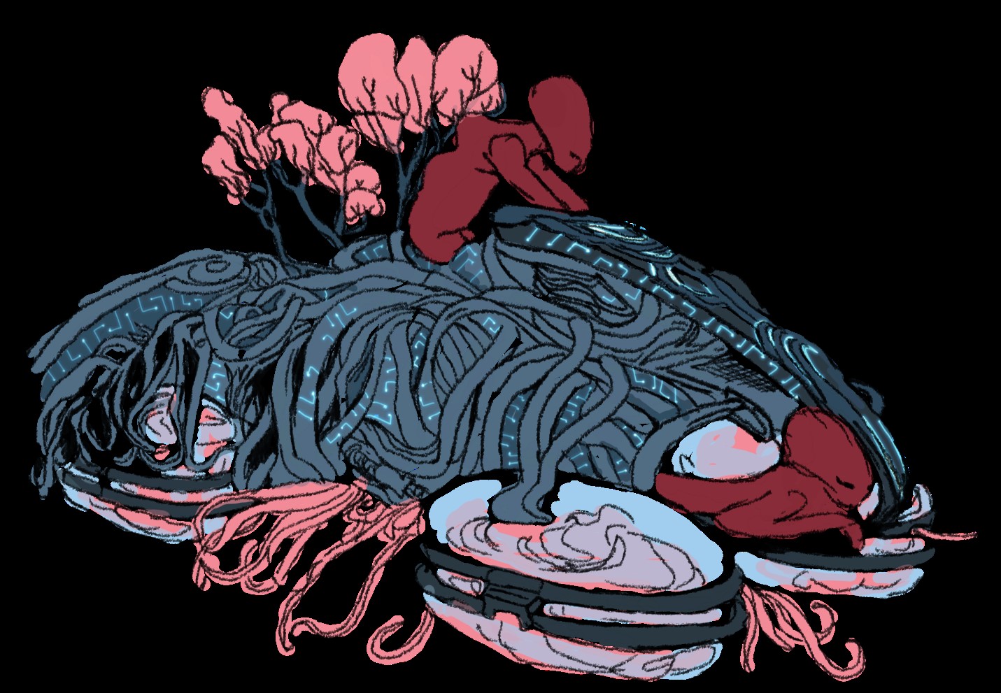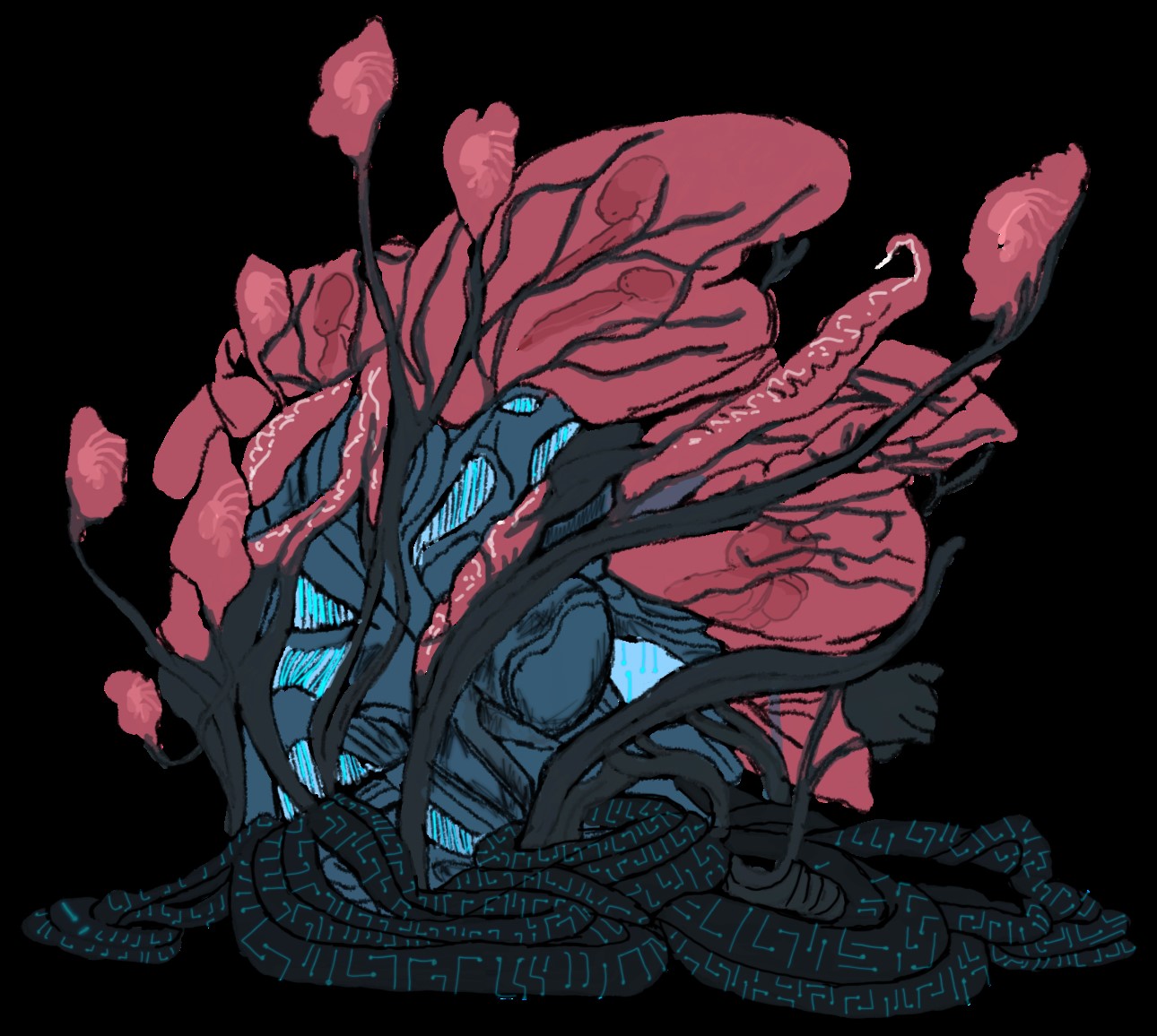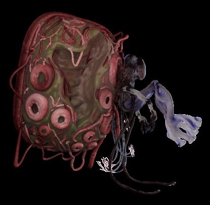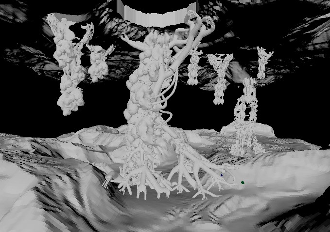 This livable structure is attached to the ceiling of the underground cave. It's where the Syphozoans travel to in order to hibernate after their rigorous endeavours hunting and catching prey.