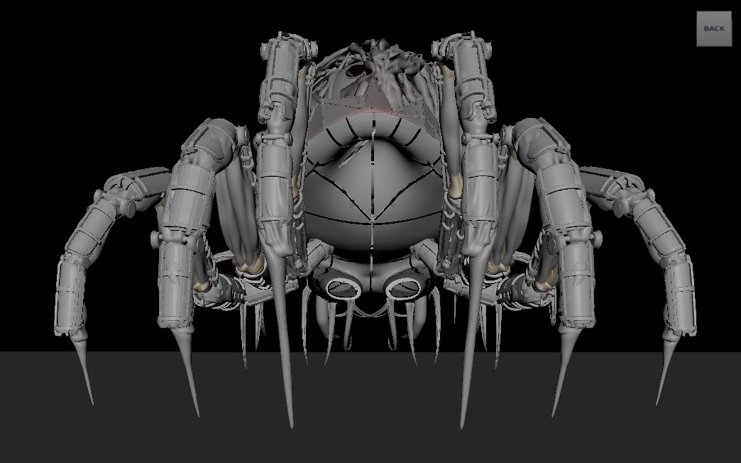 Through constructive feedback I further enhanced the model based on aesthetic appeal and functionality. I kept in mind that the legs would need to be rigged for animation, so I added a joint system.