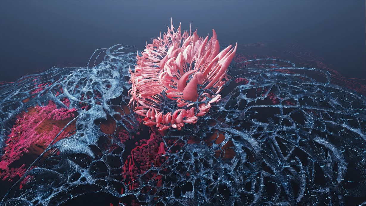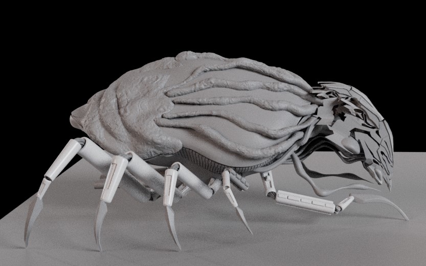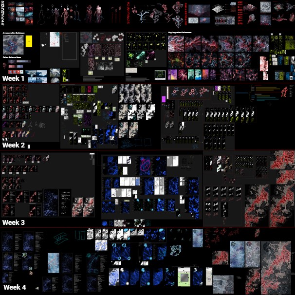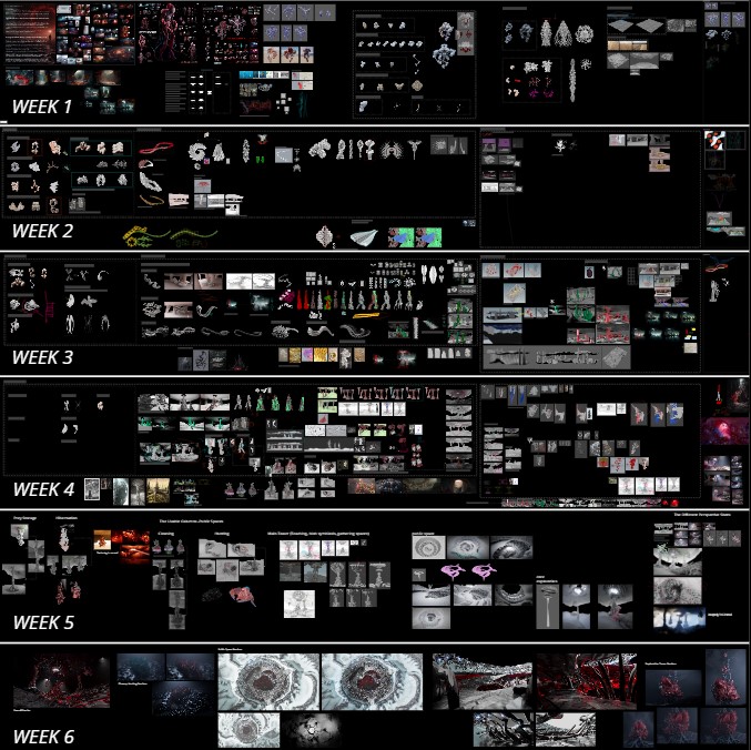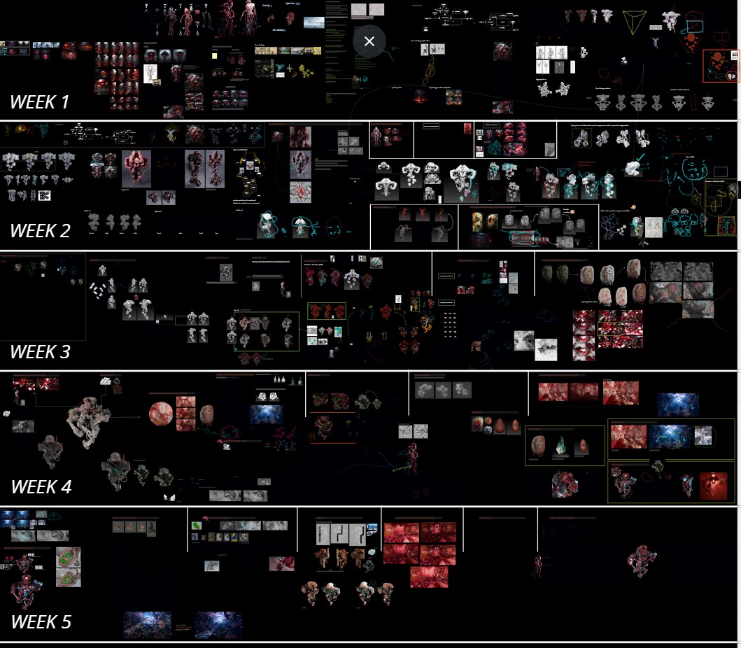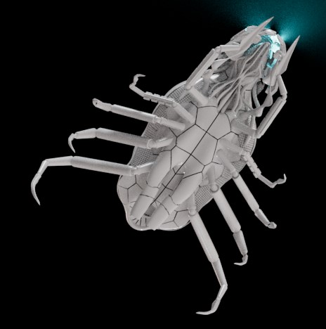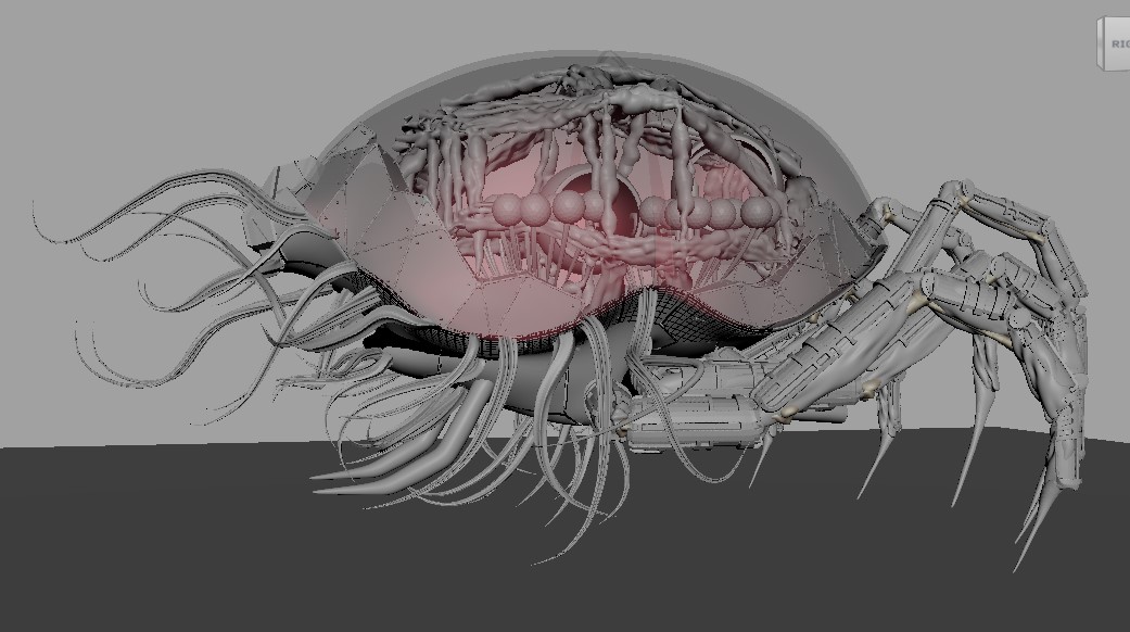 I worked in an iterative process for the spine structure modeling of the creature's corpuscle (habitat), I explored various methods to achieve the desired form and function.