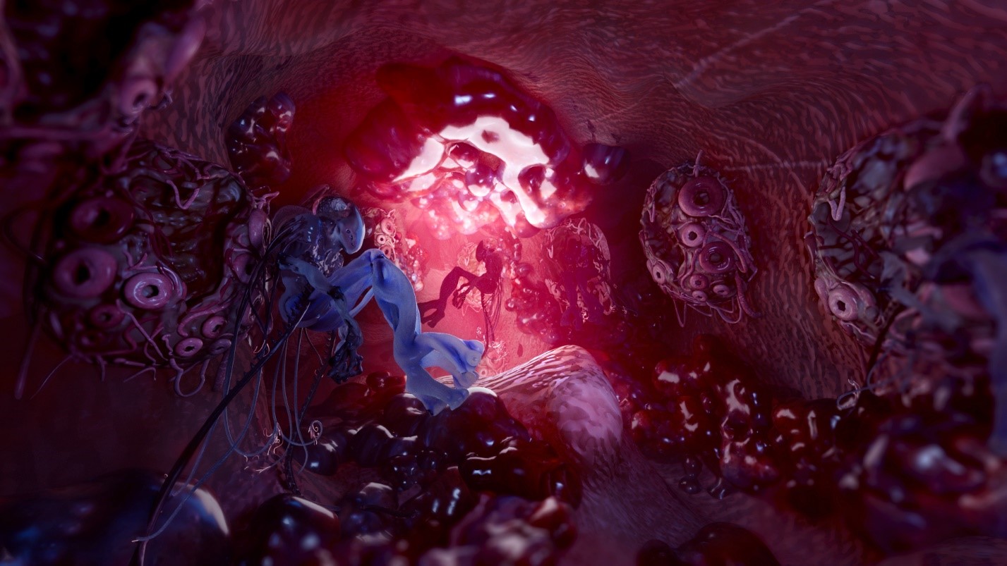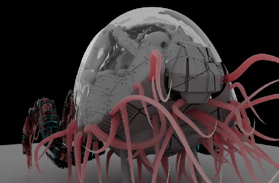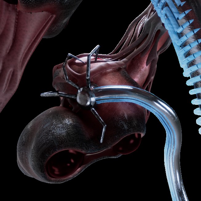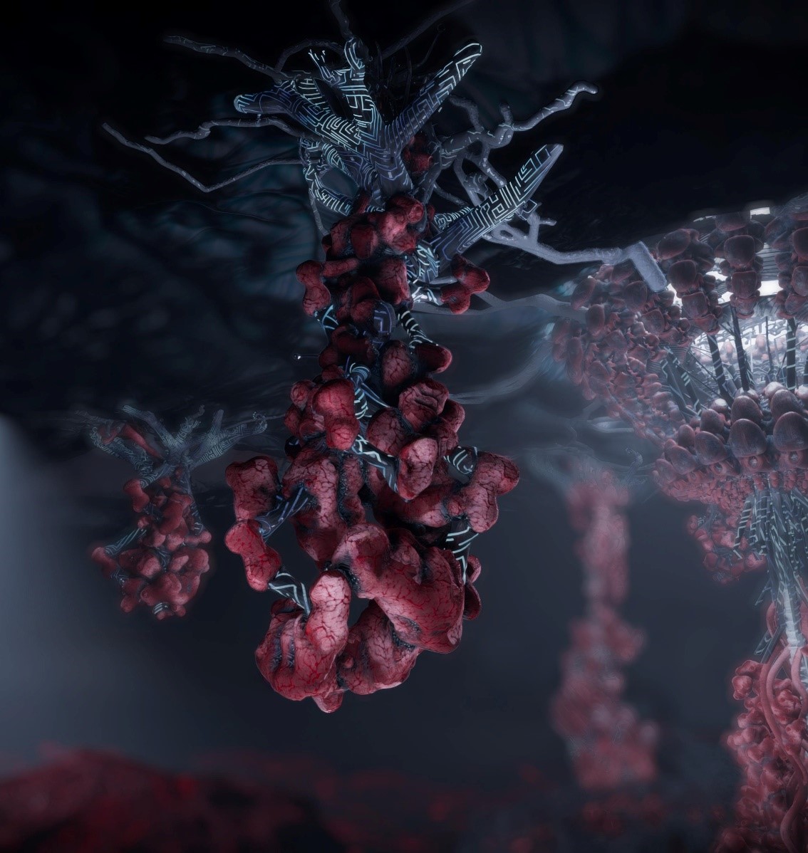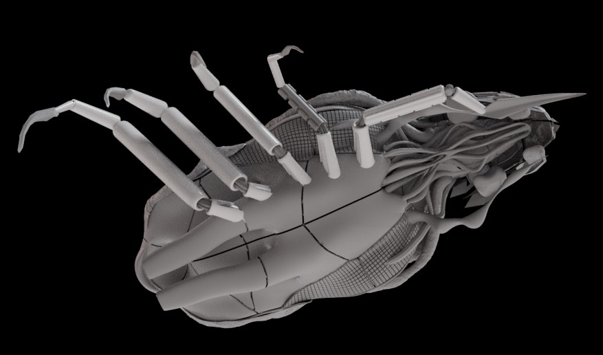 This was an additional mechanical piece added to the spine as a visualization of a hyperloop. Its functionality is mainly used for the creature to move through from one corpuscle to another. I used Maya to do the hard surface modeling.