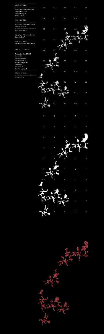 This is the cleaning space where the Syphozoans come into for hygienic purposes. They go through their cleaning process after they have given birth to their offspring. I designed this aggregation using Grasshopper Wasp plugin and implementing rules to get the desired look.