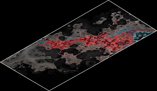 This is the visualization of the aboveground Icey network next to the underground volcanic network.